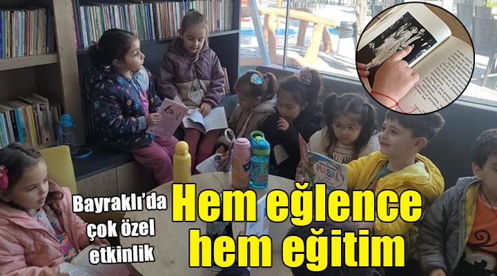 Okul öncesi e?itim yat?r?mlar?yla dikkat çeken Bayrakl? Belediyesi, e?itim kurumlar?nda hayata geçirdi?i e?itim modeli ile ö?rencilerine dersleri yerinde deneyimleyip, ö?renme ve ayn? zamanda e?lenme imkan? sunuyor. Meyve ve sebzeleri pazar yerinde, do?a sevgisini ve çevreyi korumay? orman gezilerinde, hayvan sevgisini bar?nak ziyaretlerinde ö?renen çocuklar, kitap okuman?n önemini de Kitap Kafe ziyaretiyle deneyimledi. Bu kapsamda 3-6 ya? aras?ndaki 30 çocuk De?irmen Kafe’deki kütüphaneyi gezdi.