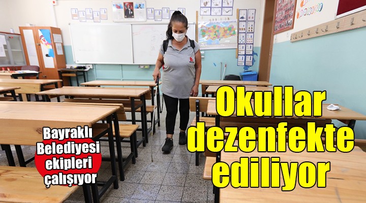 Bayrakl? Belediye Ba?kan? ?rfan Önal, “Ö?rencilerimizin sa?l??? bizim için önemli. Yeni e?itim-ö?retim y?l?na haz?rlan?rken, ö?rencilerimizin hijyenik ve güvenli bir ortamda e?itimlerine devam etmesi, ö?retmenlerin görevlerini daha steril ortamda yapabilmesi için çal??malar?m?z? sürdürüyoruz. Yaz boyunca da okullarda dezenfekte çal??malar? sürecek ve okullar, yeni sezona haz?r hale getirilecek”dedi.