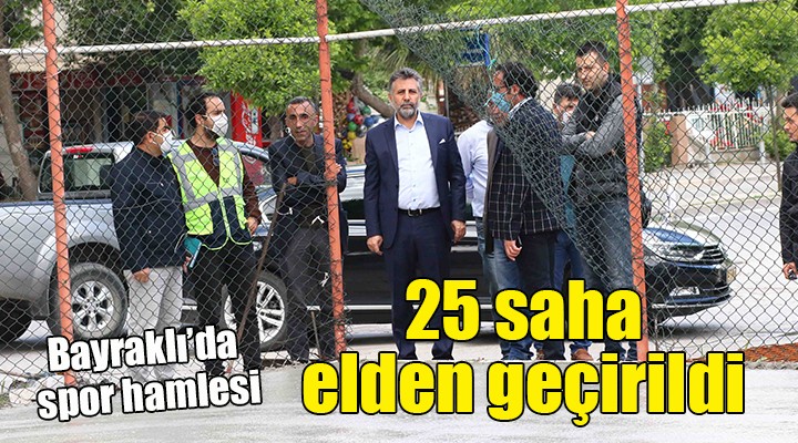Bayrakl? Belediye Ba?kan? Serdar Sandal, "?lçemizdeki eskiyen spor alanlar?n? tamamen yeniliyoruz. Büyük?ehir Belediyemiz ile birlikte ekiplerimiz, belirlenen sahalarda çal??malar?n? sürdürüyor. ?htiyaç olan her spor alan?n? yenileyip, daha modern hale getirerek, kullan?ma sunaca??z" dedi.