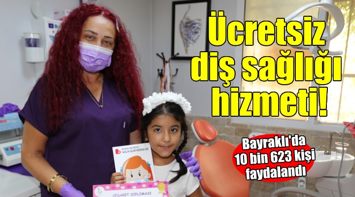 Bayrakl? Belediyesi Sa?l?k ??leri Müdürlü?ü’ne ba?l? di? klinikleri, Adalet, 75. Y?l, Gümü?pala, Onur, Postac?lar, Refik ?evket ?nce ve Nafiz Gürman Mahallelerinde faaliyet gösteriyor. Randevu sistemiyle hizmet veren poliklinikler, vatanda?lar taraf?ndan da memnuniyetle kar??lan?yor. Ayr?ca çocuklara di? f?rçalama çizelgesi ve cesaret belgesi gibi küçük hediyelerle minik hastalar?n a??z ve di? sa?l???n? korumaya te?vik edilmesi sa?lan?yor. Özel hastaneleri aratmayan kalitesi, donan?ml? poliklinikleri ve uzman kadrosuyla hizmetlerini sürdüren sa?l?k evlerinde bu kapsamda son 7 ayda 10 bin 623 vatanda?a ücretsiz hizmet verildi. 6 bin 975 ki?inin di? muayenesini gerçekle?tiren belediye hekimleri, bin 863 ki?iye dolgu, 752 ki?iye di? temizli?i ve bin 223 ki?iye de di? çekimi i?lemi yapt?. Polikliniklerden yararlanmak isteyen vatanda?lar, ilk muayene için sa?l?k evlerine ba?vurabiliyor.