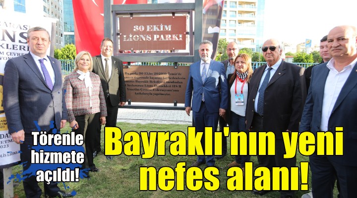Yerel seçimlerden bu yana Bayrakl?’ya onlarca modern park ve ye?il alan kazand?ran Bayrakl? Belediyesi, Smyrna Lions Kulübü’nün deste?iyle yap?m? tamamlanan 30 Ekim Lions Park?’n?n aç?l???n? yapt?. Osmangazi Mahallesi’nde, 3 bin 739 metrekarelik alana sahip park, modern oturma gruplar?, a?aç yo?unlu?u, yürüyü? yollar? ve bin 500 metrekarelik ye?il oran? ile ilçenin en güzel donat? alanlar?ndan biri oldu. Mahalle sakinleri taraf?ndan da be?eniyle kar??lanan park?n aç?l???nda Ba?kan Serdar Sandal’a desteklerinden dolay? Lionslar taraf?ndan te?ekkür plaketi verildi.