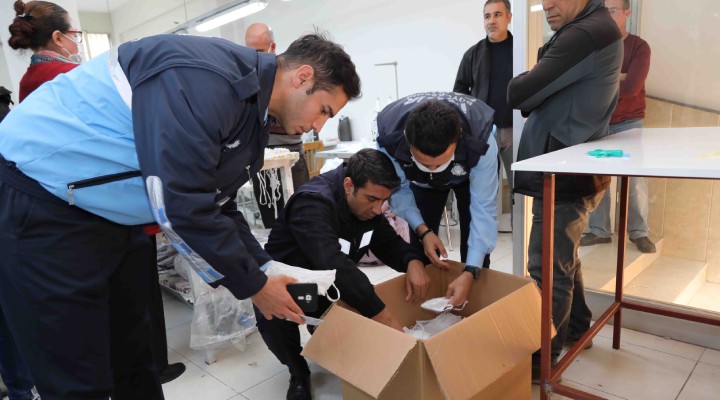 Bir ihbar? de?erlendiren, ?zmir Büyük?ehir Belediyesi Zab?ta Daire Ba?kanl???, Bayrakl? Belediyesi Zab?ta Müdürlü?ü ve Bayrakl? ?lçe Emniyet Müdürlü?ü ekipleri, Yamanlar Mahallesi’nde izinsiz maske üretti?i tespit edilen i? yerine bask?n yapt?. Ak?am saatlerinde, üretim sürerken olay yerine gelen ekipler, 9 çuval haz?r ve 3 koli de yap?m? tamamlanmak üzere toplam 25 bin adet maske buldu.?? yeri sahibinin üretim için Sa?l?k Bakanl???ndan gerekli izni olmad??? belirlendi. Firman?n faaliyeti durdurulurken, ekipler taraf?ndan ürünlere el konuldu. Yamanlar Mahallesi 7305 sokak No: 44/A adresindeki i? yeri koronavirüs tedbirleri kapsam?nda mühürlendi.