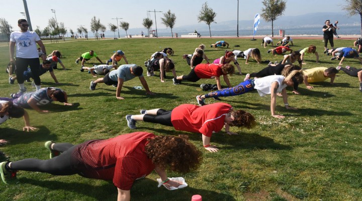 ?zmir Mavi?ehir Sports ?nternational Spor Merkezi, 19 May?s Atatürk'ü Anma Gençlik ve Spor Bayram?'nda anlaml? bir etkinli?e imza att?. Merkeze üye yakla??k 300 ki?i, Mavi?ehir sahilinde bir araya geldi, antrenman yapt? ve Türk bayra??n? dalgaland?rarak hep bir a??zdan ?zmir Mar??'n? söyledi. Aralar?nda Türk bayra?? ve Atatürk bask?l? ti?örtleri giyenlerin de oldu?u grup, spor merkezinden Mavi?ehir sahiline ko?arak geldi ve 7 setten olu?an fitness antrenman?n? aç?k havada tamamlad?. Etkinli?e kat?lanlar, kimi zaman fitness hareketlerini yaparken zorlansa da görevli antrenörlerden yard?m alarak e?lenceli hale getirdi. Etkinlikte yakla??k 300 ki?i, ayn? anda spor yapma f?rsat? buldu. Anlaml? bir etkinlik gerçekle?tirdiklerini belirten Antrenör Hasan K?l?nçer, "Bugün Sports ?nternational üyelerimiz, spor merkezinden Mavi?ehir sahile kadar ko?arak geldiler. 19 May?s Atatürk'ü Anma Gençlik ve Spor Bayram?'n? böyle bir etkinlikle kutlamak bizleri çok mutlu etti. Antrenman kapsam?nda bugün 7 setten olu?an bir egzersiz serisi belirledik. 20 e?itmenimiz üyelerin do?ru egzersiz yapabilmesi için görev ald?" dedi.
