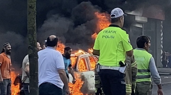 Sürücü Yavuz Genç, ard?ndan ç?lg?na dönerek otomobilini ate?e verdi. Cadde trafi?e kapat?l?rken sürücü b?çak çekerek yang?na müdahaleye gelen itfaiye ekiplerini yakla?t?rmad?.