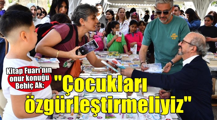 ?zmir Büyük?ehir Belediyesi'nin ev sahipli?inde ?ZFA? ve TACT Fuarc?l?k i? birli?i ile düzenlenen ?ZK?TAP- 5. ?zmir Kitap Fuar? kap?lar?n? açt?. Fuar?n onur konu?u karikatürist, yazar ve belgesel film yönetmeni Behiç Ak fuar?n aç?l?? gününde okurlar?yla bulu?tu. Ak, özellikle çocuklardan olu?an dinleyici kitlesine çocuk olman?n fark?ndal??? ve çocuk kitaplar? yazman?n püf noktalar? ile ilgili birbirinden de?erli bilgiler verdi. Gün????? Kitapl???’n?n kurucular?ndan editör Müren Beykan’?n moderatörlü?ünde gerçekle?en söyle?ide kat?l?mc?lar? Behiç Ak’?n kitaplar?n?n renkli serüvenine yolculuk yapt?. Çocuklar ellerinde Behiç Ak’?n kitaplar?yla söyle?iye kat?ld?, yazara merak ettikleri konularda soru sorma imkan? buldu.