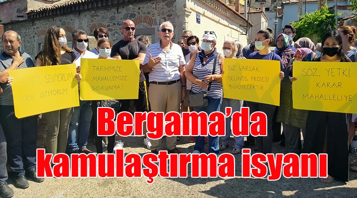 “Ben gerçekten de ?u an çok üzgünüm. Bu mahalleli ile birçok kez görü?tüm. Evlerinize girdik, çay?n?z? ayran?n?z? içtik. Selinos asl?nda bir rehabilitasyon projesiydi. Bir ?slah projesiydi. Çünkü Bergama daha temiz olsun, daha ferah olsun, daha görünür olsundu derdimiz. Bu projenin tek sebebi sizlerin istemesiydi. Buradan çöplerin kalkmas?, kanalizasyonun dereye akmamas?n? istemenizdi. Temizlenmesini istemenizdi. Bu istek nas?l oldu da döndü dola?t?, sizin evlerinizin al?nd??? ve size TOK?’lerin, apartman binalar?n?n teklif edildi?i noktaya geldi? Dünyan?n en güzel, en nadide yerlerinden birisindeyiz. Dünya miras? listesine 5 kriterle girilmi? yerlerden birisindeyiz. Böyle bir yerde Bergamal? ya?amayacakta, kamula?t?rmayla kimin ya?ayaca??n?, kimin gelece?ini bilmedi?iniz bir bilinmezle kimler ya?ayacak. Koca bir kültür mahallesini yerinden sökmek kabul edilebilir bir durum de?il.”