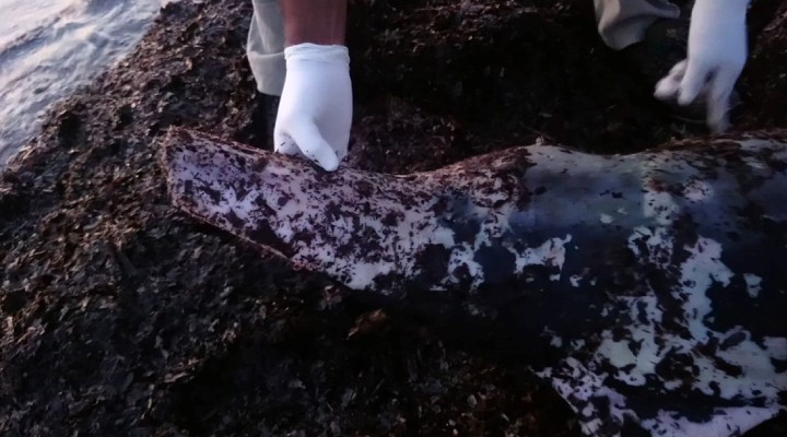 Ku?adas? Körfezi'nin güney bölgesinden geldi?i belirlenen yunuslar?n bedeninde a??r? bozulmalar oldu?u aktar?lan aç?klamada, baz?lar?n?n üzerinde delikler tespit edildi?i, 2 yunusun da kuyru?unun kesildi?i bildirildi.