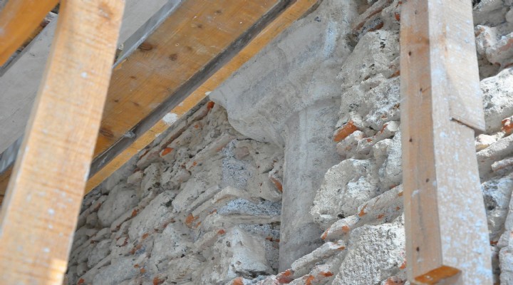 Ortaya 6 sütun ç?kt?. Sütunlar?n Bizans dönemine ait oldu?u belirlendi. Duvarla birlikte ortaya ç?kan sütunlar tarihe ???k tuttu.