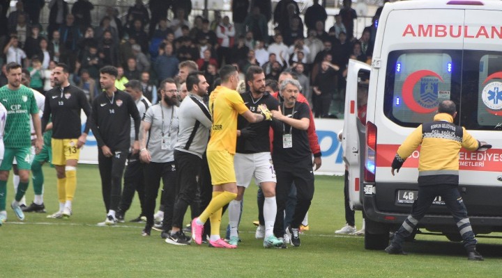 Yakla??k 15 dakika duran oyun, gerginli?in azalmas?yla tekrar ba?lat?ld?. Hakem Gürcan Hasova ve yard?mc?lar? oyunun durmas?yla yakla??k 65 dakika süren ilk yar? tamamland???nda saha içinde çevik kuvvet ekipleri nezaretinde soyunma odas?na gidebildi.
