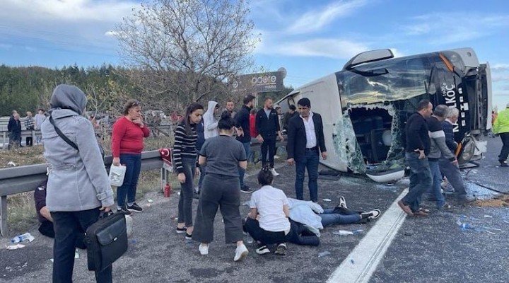 Kaza, saat 16.00 s?ralar?nda TEM Otoyolu Yeniça?a mevkisinde meydana geldi. ?stanbul istikametine giden 34 EHC 819 plakal? Kamil Koç firmas?na ait 37 yolcunun bulundu?u otobüs, sürücünün direksiyon kontrolünü kaybetmesi ile bariyerlere çarparak devrildi.