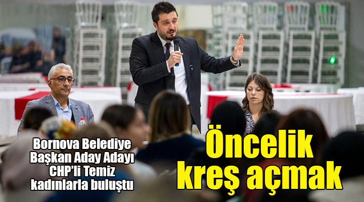 CHP Bornova Belediye Ba?kan Aday Adayl???n? aç?klayan Güney Temiz, Bornova’da gerçekle?tirecekleri projeleri Bornoval? kad?nlar, esnaflar ve Demokratik Toplum Örgütleriyle yapt??? toplant?larda detayl?ca anlatt?. Temiz, Bornova’da daha sürdürülebilir bir kent hayat? olu?turmay? hedeflediklerini, önceliklerinin ise kad?n istihdam? ve mutlu çocuklar oldu?unu aç?klad?.