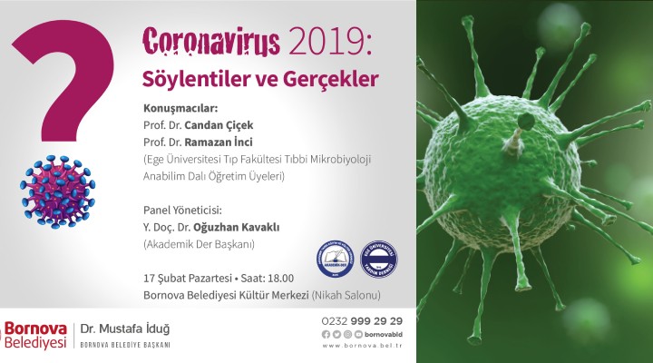 Türkiye’de rastlanmad??? halde tüm dünyay? etkileyen Corona Virüs’ü hakk?nda pek çok söylentinin de bulundu?una dikkat çeken Bornova Belediye Ba?kan? Mustafa ?du?, “Ba?ta ölümcül Corona olmak üzere virütik hastal?klar ve onlar?n bula?ma sistemati?i hakk?nda bilgi verilecek, basit korunma yöntemleri anlat?lacak” dedi.