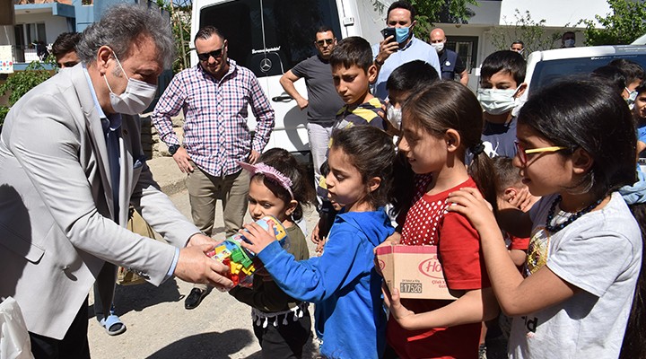 Bayramda da çocuklar? mutlu etmek istediklerini söyleyen Ba?kan ?du?,”Çocuklar bizim gelece?imiz. Onlara destek olmak ve mutlu etmekte görevimiz. Pandemi nedeniyle okullar?na gidemeyen, evlerinde kapal? kalan ve s?k?lan çocuklar?m?z?n yüzünü güldürmek istedik. Bu nedenle oyuncak, oyun hamuru, boya, ve top gibi çe?itli hediyeler getirdik” diye konu?tu.