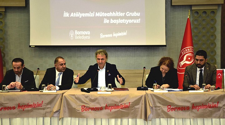 Bornova Belediyesi Kültür Merkezi’nde düzenlenen toplant?da Bornova Belediye Ba?kan? ?du?, Bornova Belediyesi Meclis Üyesi Cihan Da?l?er, Bornova Belediyesi Ba?kan Yard?mc?s? Nurhan Pi?kin, ?zmir Müteahhitler Federasyonu Ba?kan? Ziya Da?l?er ve Folkart Yönetim Kurulu Ba?kan? Mesut Sancak’?n konu?mac? oldu?u atölye çal??mas?nda müteahhitlerle biraraya geldi.