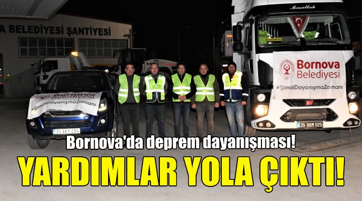 Depremden zarar gören vatanda?lar için Bornova Belediyesi, sosyal medya hesaplar? ve internet sitesi arac?l???yla ilçede ya?ayan vatanda?lara yard?m ça?r?s?nda bulundu. Battaniye, mat, iç çama??r?, pijama, sweatshirt, çocuk tayt, mont, ya?murluk, bot, afet paketi, dezenfektan, çocuk bezi, ?slak mendil ve ka??t havlu gibi ilk etapta toplanan 5 bin 194 parça yard?m afet bölgesine iletilmek üzere teslim edildi. Ayr?ca deprem bölgesinde çal??mak üzere Bornova Belediye araç ve teçhizatlar? da bölgeye sevk edildi