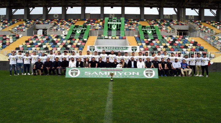 Sezonu 52 puanla Sökespor'un ikili averajla önünde zirvede tamamlay?p, Futbol Federasyonu'nun 6 ?ubat'taki deprem felaketi sonras? bu y?l Play-Off a?amas?n? kald?rmas?yla direkt TFF 3'üncü Lig'e ad?n? yazd?ran Viven Bornova, ilk ?ampiyonluk kutlamas?n? yeni sezonda maçlar?n? oynayaca?? Bornova Aziz Kocao?lu Stad?'nda yapt?. Bornova ekibi, stattaki poster çekiminin ard?ndan düzenlenen gecede aileleriyle birlikte ?ampiyonlu?u kutlad?.