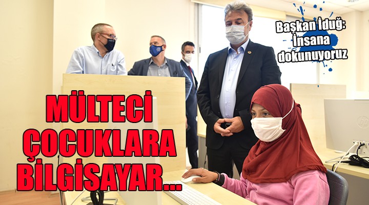 Bornova Belediye Ba?kan? Dr. Mustafa ?du?, Mevlana Toplum ve Bilim Merkezi ile Naldöken Kültür Merkezi’nde 15’?er adet bütünle?ik bilgisayar ve 1’er adet laptop olmak üzere toplam 30 bilgisayar ve 2 laptoptan olu?an labarotuvarlar?n aç?l?? kurdelesini IOM yetkilileriyle birlikte kesti. Ba?kan ?du?, aç?l??? yap?lan labaratuvarlarda mülteci çocuklarla yak?ndan ilgilendi.