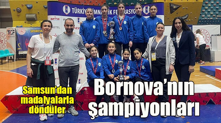 6-9 Nisan tarihleri aras?nda Samsun’da gerçekle?tiren Trampolin Cimnastik Kulüpleraras? Türkiye ?ampiyonas?’na Küçük Kad?nlar Kategorisi’nde Kübra E?ilmez, Zeynep Masal ?enol, ?layda Y?ld?r?m, Zehra Al?rsatar, Y?ld?z Kad?nlar Kategorisi’nde ?rem E?ilmez, Selen Can, Berrak Paryaz, Büyük Kad?nlarda S?la Karaku? ve Yaren Cesur olmak üzere 9 sporcu ile kat?lan Bornova Belediyesporlu cimnastikçiler büyük bir ba?ar?ya daha imza att?. Antrenörlü?ünü Gül?ah Ba?ol, Aysun Y?ld?r?m ve Seda ?ahin’in yapt??? Ye?il-Beyazl?lar, tak?m halinde Büyük Kad?nlarda Türkiye birincisi, Küçük Kad?nlarda Türkiye ikincisi, Y?ld?z Kad?nlarda ise Türkiye dördüncüsü oldu. Türk cimnasti?ine Dünya Kupas?'nda ilk madalyay? kazand?ran S?la Karaku? da bireysel dalda birincilik kürsüsüne ç?kt?. Yine bireyselde Kübra E?ilmez dördüncü, Yaren Cesur be?inci s?rada yer ald?.