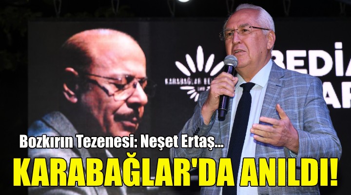 “Bozk?r?n Tezenesi” Ne?et Erta?, ölümünün 10. y?ldönümünde Karaba?lar’da Bedia Akartürk konseriyle an?ld?. Ali Fuat Cebesoy Mahallesi’ndeki Ne?et Erta? Park?’n? dolduran Karaba?larl?lar, Akartürk’ün seslendirdi?i Büyük Usta’n?n türkülerine e?lik etti.