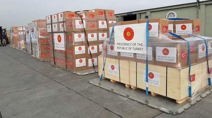 Yard?m kolilerinin üzerinde ise 'Türkiye Cumhuriyeti' yerine 'Cumhurba?kanl???' yazmas? tepki çekti.