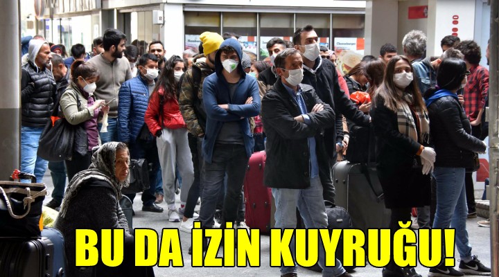 Koronavirüs nedeniyle ?zmir'de mahsur kald???n? söyleyen ?smail Gökta? (44), "Bitlis'e gitmek için üç saattir izin kuyru?unda bekliyorum. Biletimi de izin belgesi ald?ktan sonra alaca??m. Ancak bilet fiyatlar?n?n yüksek oldu?u söyleniyor. Normalde geçen hafta dönecektim ama uça??m iptal oldu?u için ?zmir'de mahsur kald?m. Çocuklar?m?n yan?na gitmek zorunday?m" dedi.