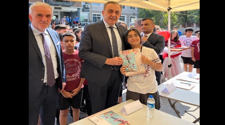 ?zmir'in Buca ilçesinde Makbule Süleyman Alkan Ortaokulu Müdürü Bertan Çetin önderli?inde düzenlenen 'Öykü Sand???ndan ?nciler' eserinin imza günü ve resim sergisine Buca Kaymakam? Mahmut Nedim Tunçer ile birlikte ?lçe Milli E?itim Müdürü Hüseyin Güne? kat?l?m sa?lad?.