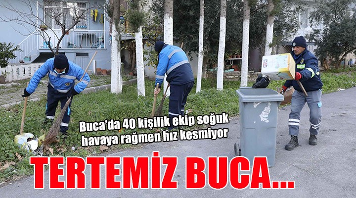 Kentin en so?uk günlerini ya?ad??? bugünlerde Buca’da temizlik hizmetleri h?z kesmeden sürüyor. Hem?ehrilerine daha temiz ve düzenli bir çevre yaratmak için canla ba?la çal??an Buca Belediye Ba?kan? Erhan K?l?ç’?n Temizlik ??leri Müdürlü?ü ile Park ve Bahçeler Müdürlü?ü bünyesinde kurdu?u 40 ki?ilik ekip, her gün bir mahallede kapsaml? hizmet veriyor.