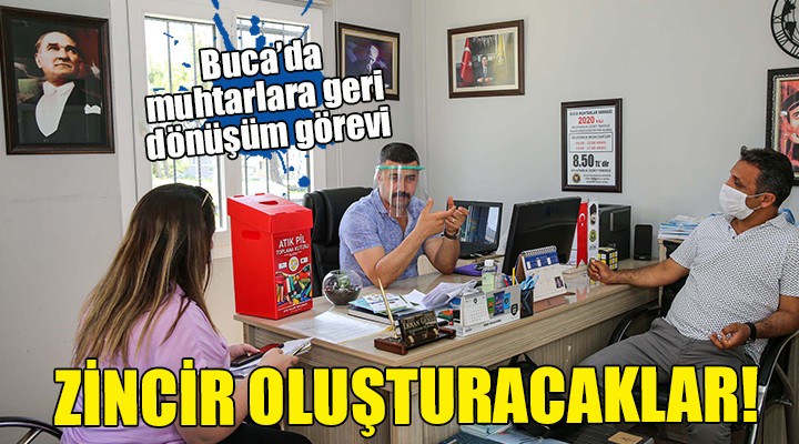 Alan?nda uzman çevre mühendisi e?li?inde Buca’n?n 47 mahalle muhtar?n? ziyaret eden ekipler, geri dönü?ümün önemini anlatt?. Evsel at?klar?n ayr??t?r?larak geri dönü?üm zincirine kat?lmas? için kap? kap? vatanda?lara yap?lan bilgilendirmenin ard?ndan muhtarlar?n da kendi mahallelerinde geri dönü?üm zinciri olu?turmalar? istendi.