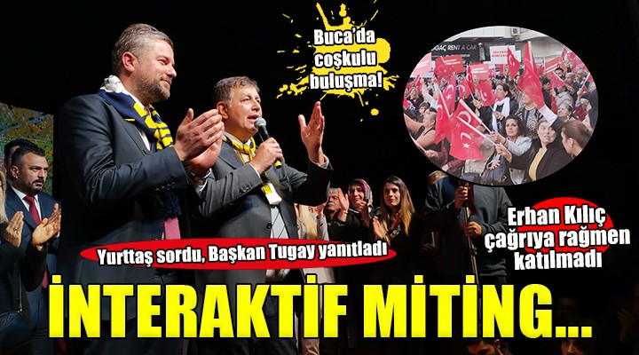 Buca Belediye Ba?kan? Erhan K?l?ç ise Ba?kan Tugay'?n dün Bornova'da Büyük?ehir Belediye Eski Ba?kan? Aziz Kocao?lu ve milletvekillerinin kat?ld??? mitingde yapt??? "Gelin yan?m?zda durun" ça?r?s?na ra?men Buca'daki bulu?maya kat?lmad?.
