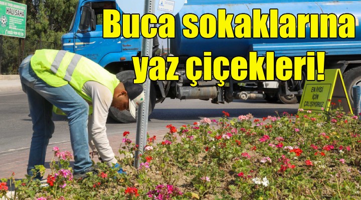 Estetik ve ye?il bir Buca için park ve bahçeler mesaisine durmaks?z?n devam eden Buca Belediyesi, sokaklar? yaz aylar?na has çiçeklerle, rengarenk donatt?. Kentin meydanlar?, parklar?, kav?aklar?, refüjleri ve yol kenarlar?ndaki pek çok noktada peyzaj ve bak?m çal??malar? gerçekle?tiren ekipler, 15 bin mevsimlik çiçe?i toprakla bulu?turdu.
