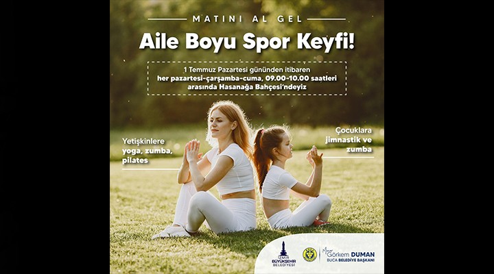 Buca Belediyesi, ?zmir Büyük?ehir Belediyesi ile ortakla?a “Aile Boyu Spor Keyfi” etkinli?i düzenleyecek. Hasana?a Bahçesi’nde 1 Temmuz itibar?yla pazartesi, çar?amba ve cuma günleri sabah 09.00-10.00 saatleri aras?nda gerçekle?tirilecek etkinlikte yeti?kinler yoga, zumba ve pilates yapma ?ans? elde ederken çocuklar da jimnastik ve zumba yapabilecek. Uzman e?itmenler e?li?inde yap?lacak bulu?ma yaz boyunca devam edecek. Buca Belediye Ba?kan? Görkem Duman, “Güne sa?l?kl? ve zinde bir ba?lang?ç yapmak isteyen tüm Bucal?lar? Hasana?a Bahçesi’ne bekliyoruz. Mat?n?z? da al?n gelin” diye konu?tu.