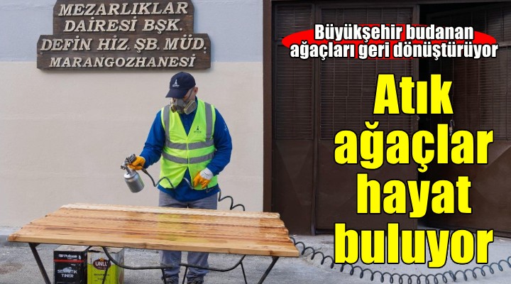?zmir Büyük?ehir Belediye Mezarl?klar Dairesi Ba?kanl???’n?n marangoz atölyesi, fabrika gibi çal???yor. Kentte bulunan yakla??k 2 bin mezarl?k alan?ndaki a?açlar?n budanmas? sonucu elde edilen keresteler, Bornova P?narba??’ndaki atölyeye getiriliyor. Burada testere makinesinden geçirilen keresteler; mezar tahtas?, mezar ba?ucu tahtas?na dönü?türülüyor. Böylelikle hem budanan a?açlar de?erlendiriliyor hem de belediyenin bütçesi daha verimli kullan?l?yor.