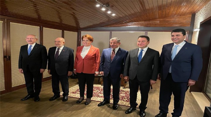 CHP Lideri Kemal K?l?çdaro?lu'nun daveti üzerine, ?Y? Parti Genel Ba?kan? Meral Ak?ener, Saadet Partisi Genel Ba?kan? Temel Karamollao?lu, Demokrat Parti Genel Ba?kan? Gültekin Uysal, DEVA Partisi Genel Ba?kan? Ali Babacan ve Gelecek Partisi Genel Ba?kan? Ahmet Davuto?lu, Çankaya Belediyesi'ne ait Ahlatl?bel Tesisleri'nde bir araya geldi. Liderlerin yakla??k 5,5 saat süren görü?mesinin ard?ndan ortak bir aç?klama yap?larak, toplant?n?n amaçlar? ve hedefleri, uzla?ma sa?lanan konulara dikkat çekildi, "yar?n?n Türkiye'sini in?a etmek için önemli bir ad?m at?ld???" vurgusu yap?ld?.