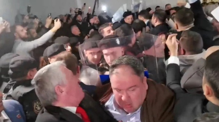 Bursa Büyük?ehir Belediye Ba?kan? Mustafa Bozbey'in tutuklanmas? ve ?çi?leri Bakanl??? taraf?ndan görevden uzakla?t?r?lmas?n?n ard?ndan bugünkü mecliste yeni ba?kanvekili seçilecek. Seçim öncesi belediye binas?nda karga?a ç?kt?. Polis yo?un güvenlik tedbiri al?rken, meclis üyeleri haricinde kimsenin içeriye girmesine izin verilmedi. Polis içeri girenlere müdahale etti.
