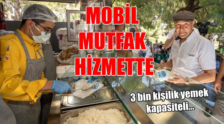 ?zmir Büyük?ehir Belediyesi 3 bin ki?i kapasiteli mobil mutfa?? hizmete açt?. ?zmir Büyük?ehir Belediye Ba?kan? Tunç Soyer, "A?evi olarak kullanaca??m?z arac?m?z?, afet gibi acil durumlarda da hizmet verecek ?ekilde tasarlad?k. Hem?ehrilerimiz nerede ihtiyaç duyarsa, mobil a?evimiz orada olacak" dedi.