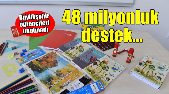 ?zmir Büyük?ehir Belediyesi, ?zmir il s?n?rlar? içerisinde ya?ayan, sosyal inceleme sonucu ihtiyaç sahibi oldu?u belirlenen ilkokul ve ortaokul ö?rencilerine k?rtasiye deste?i sa?lamaya devam ediyor. 2023 y?l?nda ?zmir ?ehir Kart?'na 500 TL olarak yat?r?lan k?rtasiye deste?i, 2024 y?l?nda ?zmir Büyük?ehir Belediye Ba?kan? Dr. Cemil Tugay’?n talimat?yla her bir ö?renci için 2 bin 500 TL’ya ç?kar?ld? ve toplam 13 bin 584 ö?renciye 33 bin 960 TL’lik k?rtasiye deste?i ula?t?r?ld?. Anla?mal? k?rtasiyelerde al??veri? yap?ld??? için proje k?rtasiye esnaf?na da can suyu oldu.