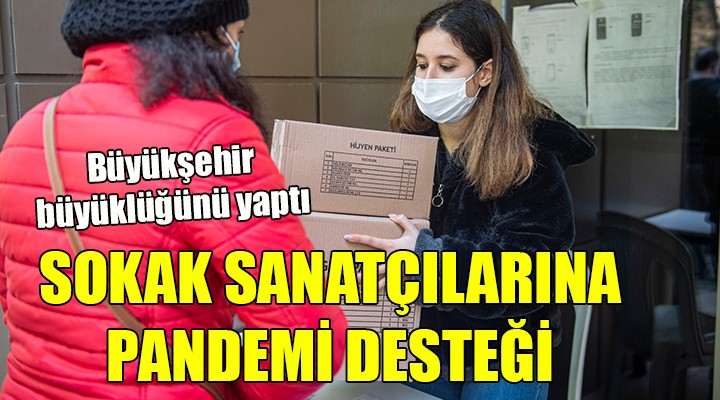 ?zmir Büyük?ehir Belediyesi pandemi döneminde zor günler geçiren kültür sanat üreticilerini desteklemeyi sürdürüyor. Büyük?ehir Belediyesi geçimini sadece sektörden sa?layan sokak sanatç?lar?na ve müzisyenlere g?da kolisi ve hijyen paketi da??tmaya ba?lad?.