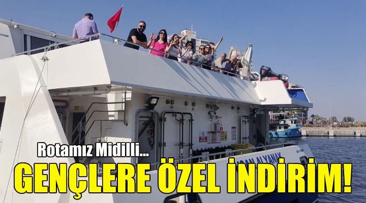 ?zmir Büyük?ehir Belediyesi, deniz turizmine ivme kazand?racak ?zmir-Midilli seferlerinde gençlere özel indirim kampanyas? ba?latt?. ?zmirlilerin yo?un ilgi gösterdi?i Midilli biletlerinin sat???nda gençlerin e?itim dönemi yorgunlu?unu atabilmesi için 08–18 ya? grubu için bilet fiyatlar?na yüzde 50 indirim getirildi. Böylelikle tam yolcu gidi? – dönü? bilet ücreti 60 Euro, tek yön bilet ücreti 35 Euro, 08-18 ya? aras? gençlerin yüzde 50 indirimli gidi? – dönü? bilet ücreti 30 Euro olarak belirlendi. 0 – 7 ya? grubu yolcular ise ücretsiz yolculuk yapabilecek.