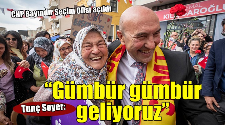 CHP ?zmir ?l Ba?kanl???, 14 May?s'ta yap?lacak Cumhurba?kanl??? ve genel seçim çal??malar? kapsam?nda Bay?nd?r'da seçim ofisi aç?l??? yapt?. ?zmir Büyük?ehir Belediye Ba?kan? Tunç Soyer, CHP ?zmir ?l Ba?kan? ?enol Aslano?lu, Millet ?ttifak?'n?n milletvekili adaylar?, ilçe belediye ba?kanlar?, ittifak partilerinin ilçe ba?kanlar?, muhtarlar ve vatanda?lar?n kat?ld??? aç?l??ta Bay?nd?rl? kad?nlar?n açt??? pankartlar renkli görüntüler olu?turdu.