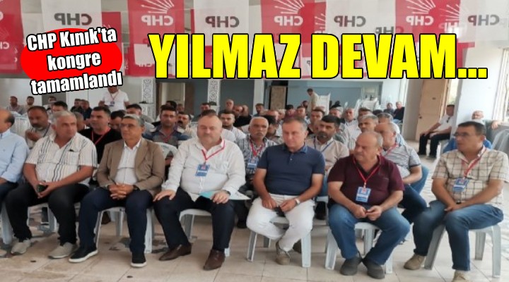 CHP K?n?k'ta 9 y?ld?r görevde olan mevcut ba?kan ?smail Y?lmaz tek liste ile girdi?i kongrede yeniden ilçe ba?kan? oldu. 115 delegenin kat?ld??? kongrede Y?lmaz 110 oy ald?, 5 oy ise geçersiz say?ld?.
