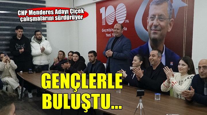 Yerel seçimlerde CHP Menderes Belediye Ba?kan Aday? olan ?lkay Çiçek, seçim çal??malar?na devam ediyor. Menderes’in her noktas?nda farkl? kesimlerle bulu?an Çiçek gençlerle de bir araya geldi. CHP ?lçe Ba?kanl???’nda ki bulu?maya yo?un ilgi gösteren gençler Çiçek’e destek sözü verdi.