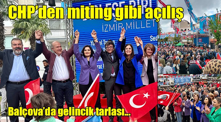 SONKALE?ZM?R- CHP'nin ?zmir 1’inci bölgedeki seçim çal??malar? Balçova ile sürdü. Balçova'daki co?kulu aday tan?t?m? ve seçim ofisi aç?l??? mitinge dönü?tü. Çok say?da yurtta? belediye önündeki alan? doldururken, baz? yurtta?lar da evlerinin balkonlar?ndan ve çat?lardan etkinli?i izledi. Aç?l??a ?zmir Büyük?ehir Belediye Ba?kan? Tunç Soyer'in yan? s?ra Balçova Belediye Ba?kan? Fatma Çalkaya, Konak Belediye Ba?kan? Abdül Batur, Narl?dere Belediye Ba?kan? Ali Engin, Seferihisar Belediye Ba?kan? ?smail Yeti?kin, Menderes Belediye Ba?kanvekili Erkan Özkan ve Torbal? Belediye Ba?kan? Mithat Tekin de kat?ld?.