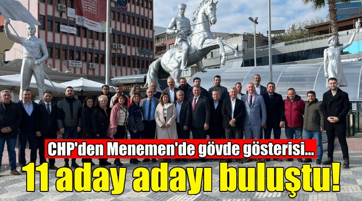 CHP Menemen ?lçe örgütü bugün, Menemen Belediye Ba?kanl???'na aday aday? olan isimleri bir araya getirerek birlik ve beraberlik pozu verdi. Kahvalt? organizasyonuna CHP Menemen ?lçe Ba?kan? Hüseyin Özbey, CHP Menemen ?lçe yönetimi, Kad?n ve gençlik kolu ba?kanlar? ve CHP Menemen'in 11 aday aday? kat?l?m sa?lad?.
