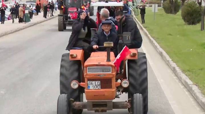 CHP Genel Ba?kan? Özgür Özel, miting alan?na çiftçilerle birlikte traktör kullanarak gidiyor.