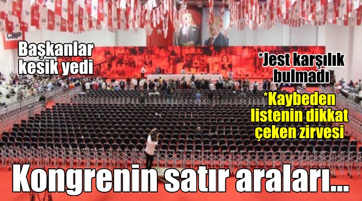 SONKALE?ZM?R- CHP'de merakla beklenen ?zmir ?l Kongresi sonuçland?. ?enol Aslano?lu, 418 oy alarak il ba?kan? seçildi. Rakibi, Mehmet ?akir Ba?ak, 138 oyda kald?. ?zmir Büyük?ehir Belediye Ba?kan? Tunç Soyer'in destekledi?i Aslano?lu'nun ezici üstünlükle kazand??? kongrenin ard?ndan listelerdeki detaylar dikkati çekti. Geçmi? y?llarda kurultay delege listesine mutlaka yaz?lan belediye ba?kanlar? bu kez arad???n? bulamad?. Büyük?ehir dahil 23 CHP'li belediyeden sadece 12 ba?kan listelerde yer ald?.