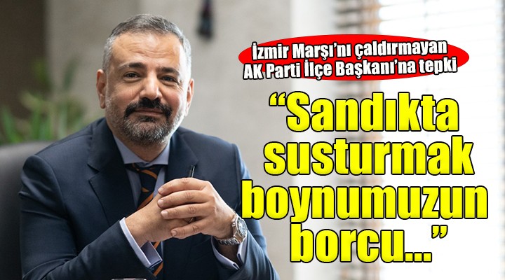 "AKP Torbal? ilçe ba?kan? ?zmir mar?? çal?n?rken “Sak?n ha” diyerek bandoyu tehdit edip susturuyor. ??te AKP’nin gerçek yüzü bu… ?zmirden de, ?zmirlilerin de?erlerinden de, Atatürk’ten de ho?lanm?yorlar. ?zmir’in mar??n? çald?rmayanlar? sand?kta susturmak boynumuzun borcu. Mar??m?z? da, ?ehrimizide, Atam?z? da sonuna kadar savunmaya devam edece?iz. ?zmirli savunmaya devam edecek."