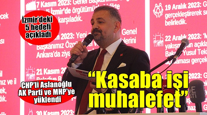 ?zmir'de AK Parti ile MHP'nin muhalefetinin soruldu?u Aslano?lu, "Çok kasaba i?i olan durumlar. ?zmirli'ye ?zmir'i sevdiklerini inand?ram?yorlar. Bir çal??ma yap?lm??. Her 4 ?zmirli'den 3'ü AK Parti ve MHP’nin ?zmir'e hizmet edilmesini engelledi?ini dü?ünüyor. Kötüleme ?zmir'de bir i?e yaram?yor. ?zmir'de ‘?zmirliler demokrasiye Atatürk’e a??k olduklar? için oy veriyorlar’ diyorlar. Burada bile kendilerinin demokrasi kar??t?, Atatürk kar??t? gösteriyorlar. ?zmirli onlar?n ?zmir’i sevmedi?ini biliyor. 5 verip 1 alamad???n? biliyor. 469 milyar yat?r?m yapt?k' diyorlar. ?zmirli 'Personel maa??n? bize yat?r?m' diye kakalamaya çal??t?klar?n? biliyor" dedi.