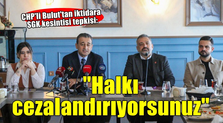 ?zmir Büyük?ehir Belediyesi ve ilçe belediyelere yap?lan SGK kesintilerine tepki gösteren Bulut, "Silkeleyin bunu dediler, biz daha ona bir ?ey söylemeden kriminal döneme geçtiler. Siz kimi cezaland?r?yorsunuz, halk? cezaland?r?yorsunuz. Silkelemek ?zmirliyi cezaland?rmak. ?zBB Ba?kan?n? ele?tirebilirsiniz ama son gün, i?çi maa?? ödenece?i gün belediyenin paras? kesilir mi? Kendindeki belediyeler ne yapm??, bu tamamen siyasi. Kimse belediye ba?kan?n?n cezaland?r?ld???n? dü?ünmesin, halk cezaland?r?l?yor" diye konu?tu.