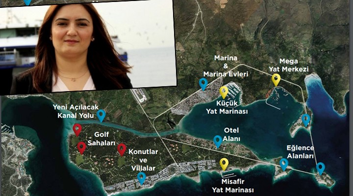 K?l?ç, tan?t?m projesinde en dikkat çeken yerin, dünyada en ender sörf merkezlerinden birisi olan Alaçat?’n?n bugünkü geli?mesine temel sa?layan Alaçat? Koyu ile Mersin Körfezi aras?nda aç?lacak olan deniz kanal? oldu?unu kaydetti. Gemilerin geçece?i geni?likte olan bu deniz kanal?n?n aç?lmas? halinde burada büyük ve yeni bir ada olu?aca??na dikkati çeken Av. K?l?ç, böyle bir kanal?n aç?lmas?n?n körfezdeki do?al dengenin bozulmas?na, rüzgar ve deniz su ak?mlar?n?n de?i?mesine ve böylece Alaçat?’da art?k sörf yap?lamamas?na neden olaca??n? vurgulad?. Av. Sevda Erdan K?l?ç, ayn? bölgedeki pelikan ku?lar? vadisinin de yok olaca??na; binlerce konut, yol ve marina ile bölgenin do?al dengesinin tamamen tehlike alt?na girece?ine de i?aret etti.
