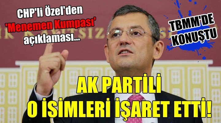 SONKALE?ZM?R- Geçen ocak ay?ndaki CHP ?lçe kongresinde yapt??? aç?klamalar nedeniyle hakk?nda terör soru?turmas? aç?lan Menemen Belediye Ba?kan? Serdar Aksoy, TBMM'nin gündemine de damga vurdu. Mecliste dikkat çeken aç?klamalar yapan CHP Grup Ba?kanvekili Özgür Özel, CHP'li Ba?kan Aksoy'a kumpas kuruldu?unu ileri sürdü. Özel, AK Parti Menemen ilçe Ba?kan? ?dris Akkoyun ile 31 Mart'daki yerel seçimlerde Aksoy'a rakip olan ancak yar??? kaybeden AK Parti Menemen Belediye Ba?kan Aday? Durmaz Bayraktar'? i?aret etti. "Kirli bir kumpas ile kar?? kar??yay?z" diyen Özel, ?unlar? söyledi: